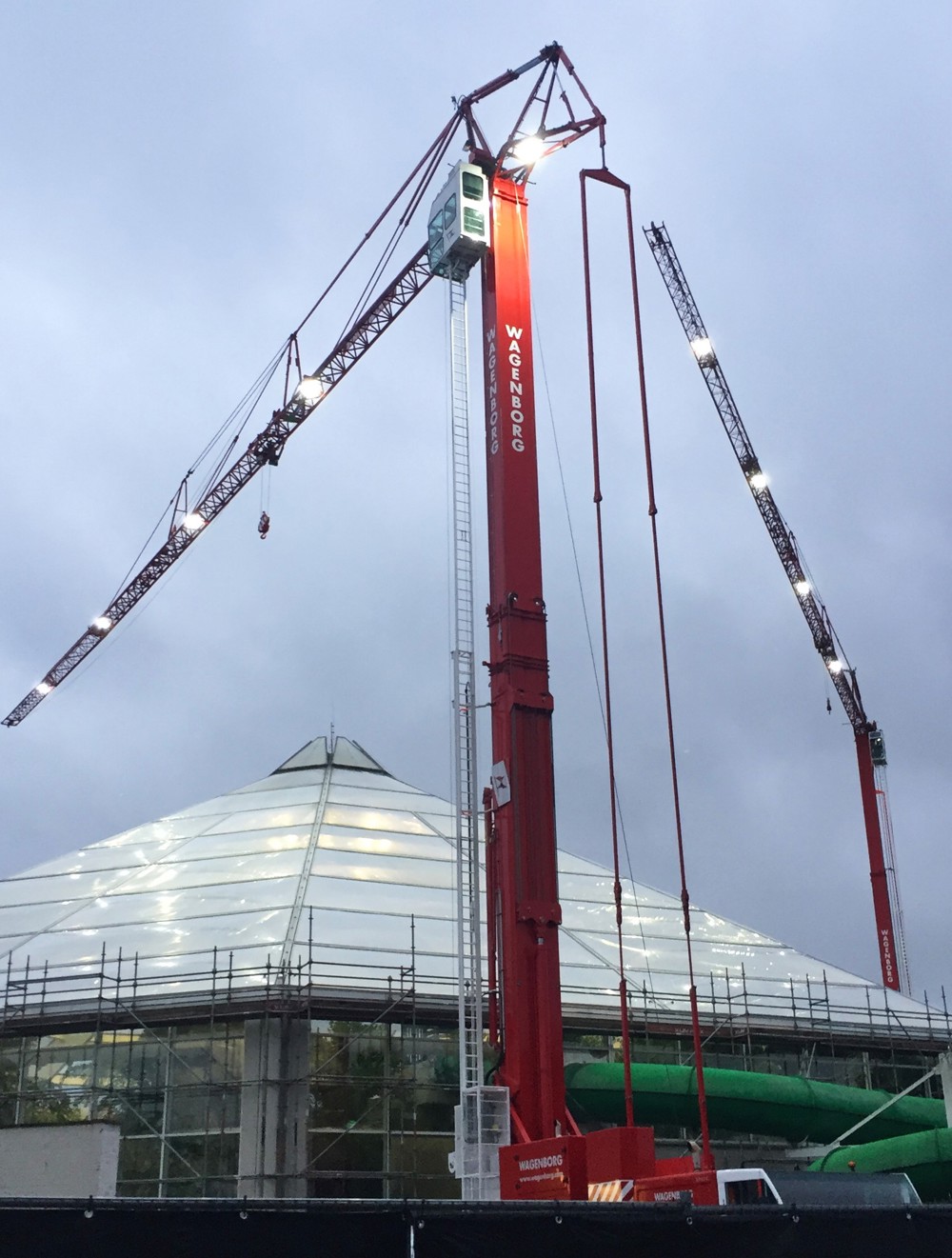Immens project bij Center Parcs Les Bois-Francs Hoe vervang je een compleet koepeldak van een subtropisch zwembad op een Frans vakantiepark binnen vier weken tijd? Met slimme hijsoplossingen, een strak en goed doordachte planning én voorbereiding hebben we de vervanging van het koepeldak binnen recordtijd gerealiseerd.